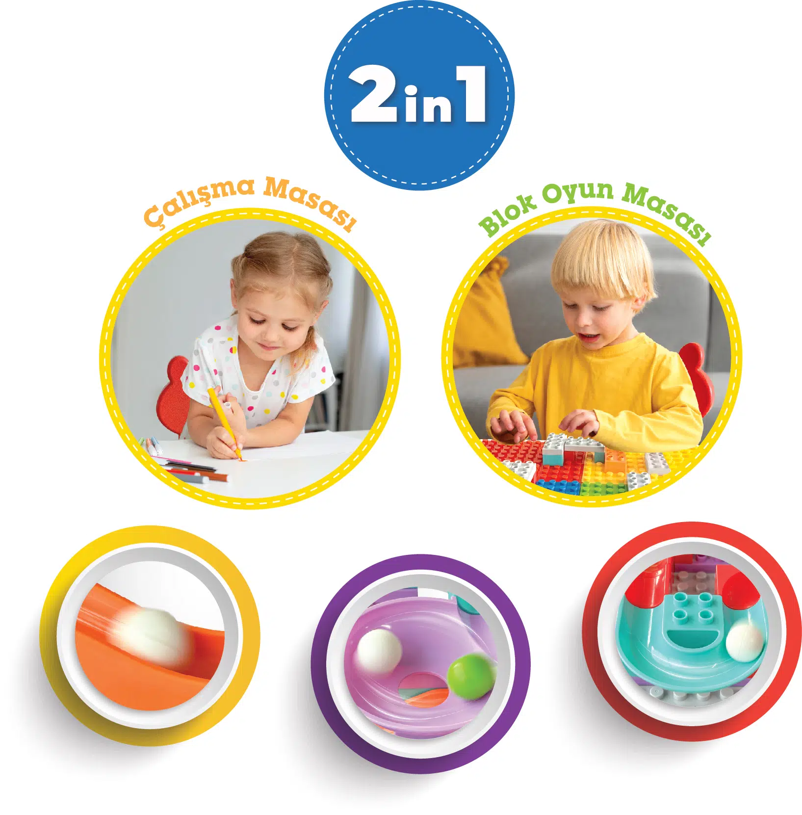 Çalışma masası ve oyuncak saklama alanı kum yada su havuzu olarak kullanaıbilmeltedir.
